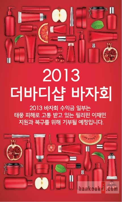 사회적 책임을 실천하는 기부와 나눔의 대표 브랜드 영국의 더바디샵 (thebodyshop.co.kr)이 2013 자선 바자회를 개최한다.